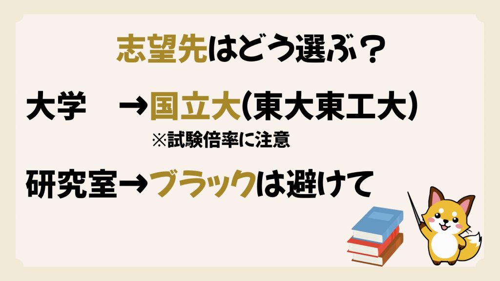 「どうしても入りたい研究室がある」というわけでなければ、国立大学を中心に探すのがおすすめです。